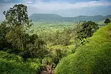 The Karla cave complex is built into a rocky hillside around 60 kilometres (37 mi) from Pune, with large windows cut into the rock to light the cave interiors.[7] The caves are among a large numbers of similar caves excavated in the Sahyadri Hills in the early 1st millennium CE. There are altogether 16 caves in the group, with 3 of them being Mahayana caves. Most of the caves are lenas, with the major exception being the Great Chaitya, Cave No. 8.[8]