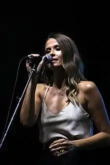 She represented Macedonia in the Eurovision Song Contests 2002 and 2007, ranking 19th and 14th, respectively.[2][3] Gočeva has received numerous awards and accolades both in North Macedonia as well as other Balkan award ceremonies. She is widely known as the most famous Macedonian female pop singer and has received the label "Macedonian pop princess/queen" and a "pop diva".[4][5] Although most of her songs are sung in Macedonian, Gočeva has also released records in Serbo-Croatian and English leading to an increase in popularity in Bulgaria and ex-Yugoslav countries such as Serbia, Bosnia and Herzegovina, Montenegro, and Croatia.[6] Additionally, Gočeva is renowned for her casual fashion style for which she frequently collaborates with Caci Pakoska. With her music work, Gočeva has also taken part in campaigns against drug use and uterine cancer.