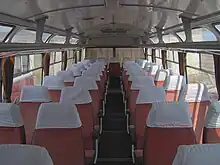 Karosa ŠD 11 is completely different from its predecessor, Škoda 706 RTO-LUX, which had engine in front and two doors. ŠM 11 is model of Karosa Š series. It is derived from Karosa ŠM 11 city bus, and also unified with intercity bus Karosa ŠL 11. Body is semi-self-supporting with frame and engine with manual gearbox in the middle, between the wheels. Only rear axle is propulsed. Front axle is independent, rear axle is solid. All axles are mounted on air suspension. On the right side is one door. Inside are used high padded seats. Drivers cab is not separated from the rest of the vehicle.