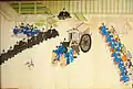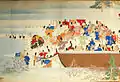 Kasuga Gongen Genki E (春日権現験記絵) is a set of painted handscrolls (emakimono) that was produced during the early 14th Century (Kamakura period) of Japan, by members of the Fujiwara clan. The work was created in order to honor the deities of Kasuga, with the stories revolving around the Kasuga shrine and Kōfukuji temple, located in Nara. The colourful silk work was made with silver and gold paints and consists of 20 scrolls with 93 sections of text and illustrations, which was completed in 1309.