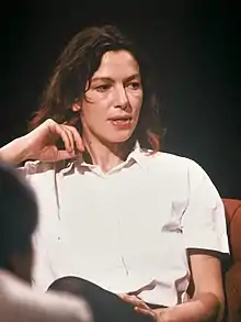 At one point, Hamnett met with then-Prime Minister Margaret Thatcher wearing her own T-shirt with the slogan "58% DON'T WANT PERSHING", a reference to polls showing public opposition in the United Kingdom against the basing of Pershing II missiles in the country.[8] In 2003, at a London fashion show, Hamnett's catwalk models wore shirts with "STOP WAR, BLAIR OUT",[9] a reference to the looming invasion of Iraq.