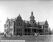 The building was designed and built by noted architect Carl M. Neuhausen, designer of the Cathedral of the Madeleine and the Kearns Mansion, both located in Salt Lake City. He told Bishop Scanlan that he would be glad to give his services free of cost.[5] The cornerstone was laid on August 27, 1899. The next day the deed was officially transferred to the Diocese of Salt Lake for the sum of $10.00.[6] Kearns-St. Ann's Orphanage was dedicated on October 7, 1900,[7] and quickly became home to 92 children and the Sisters of the Holy Cross who cared for them.[8]