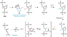 The unifying mechanism of bioactivity in all enediyne antibiotics is the Bergman cyclization, wherein the enediyne portion undergoes spontaneous cycloaromatization to generate a para-benzyne biradical activated toward homolytic abstraction of hydrogen from suitable donors, including the deoxyribose sugars of DNA. This generates a carbon-centered free radical on DNA, which undergoes oxidation by molecular oxygen. The resulting peroxide decomposes to form single- or double-stranded breaks in DNA, ultimately leading to cell death.[5]