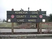 Kennekuk Cove County Park is a 3,000-acre (12 km2) park in Blount Township in Vermilion County, Illinois, United States. It is located about 5 miles (8.0 km) west of Danville, Illinois and is bordered by the Middle Fork State Fish and Wildlife Area on the west and the Kickapoo State Recreation Area on the south. It includes a 170-acre (0.69 km2) lake called Lake Mingo.