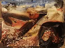 Kenneth Callahan (1905–1986) was an American painter and muralist who served as a catalyst for Northwest artists in the mid-20th century through his own painting, his work as assistant director and curator at the Seattle Art Museum, and his writings about contemporary art. Born in Eastern Washington and largely self-taught as an artist, Callahan was committed to an art that went beyond the merely illustrative. He enrolled at the University of Washington in 1924 but did not stay long. He traveled widely, absorbing influences from the different countries and cultures he experienced. His talent was recognized early; his work was included in the first Whitney Biennial exhibition in 1933 and he went on to a distinguished painting career. Callahan is identified as one of the Northwest Mystics – along with Guy Anderson, Morris Graves, and Mark Tobey, who shared a muted palette and strong interest in Asian aesthetics.[1]