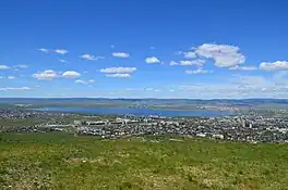 Kenon lake is part of the Ingoda river basin, It is located in the Chita-Ingoda Depression (Читино-Ингодинская впадина), in the western outskirts of Chita, Zabaykalsky Krai. A few small streams flow into the lake. The main ones are the Ivanovka and Kadala rivers,[4] which have their sources in the neighboring Yablonovy Range. The outflow is through a 2 km (1.2 mi) long channel leading to the Ingoda that fills with water only in the wettest years.[3][5]