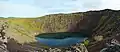 Kerið (Icelandic pronunciation: [ˈcʰɛːrɪθ]; also Kerith or Kerid) is a volcanic crater lake located in the Grímsnes area in south Iceland, along the Golden Circle. It is one of several crater lakes in the area, known as Iceland's Western Volcanic Zone, which includes the Reykjanes peninsula and the Langjökull Glacier, created as the land moved over a localized hotspot, but it is the one that has the most visually recognizable caldera still intact. The caldera, like the other volcanic rock in the area, is composed of a red (rather than black) volcanic rock. The caldera itself is approximately 55 m (180 ft) deep, 170 m (560 ft) wide, and 270 m (890 ft) across. Kerið's caldera is one of the three most recognizable volcanic craters at an age of approximately 6,500 years. It is only half as old as most of the surrounding volcanic features. The other two are Seyðishólar and Kerhóll.