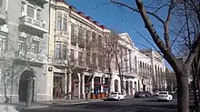 | 3 | Mikado Cinematography building | Mikado Cinema Building Khagani alley 7 The building of the Mikado Cinematography or the building of the Azerbaijan State Academic Russian Drama Theater named after Samad Vurgun was renovated in 1916 by Aliheydar Karimov and used as a warehouse in the Chinese-Japanese style. In 1917, for the first time in Baku, a scientific-educational cinematographic session was held for high school students in this theater. The Pel Mel Theater, the Baku Free Criticism and Propaganda Theater, and the Baku Workers' Theater functioned in the building at different times. The Azerbaijan State Academic Russian Drama Theater named after Samad Vurgun has been operating in the building since 1937.[4][5] | ![]() | ||
