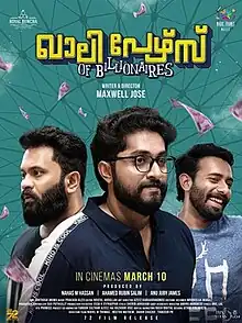 Khali Purse of Billionaires (transl.Empty Purse of Billionaires) is a 2023 Indian Malayalam-language comedy film directed by Maxwell Jose.[3] It stars Dhyan Sreenivasan, Arjun Ashokan, Aju Varghese, and Tanvi Ram as the main leads.[4] The film is jointly produced by Ahamed Rubin Salim, Nahas M Hassan, and Anu Juby James under the banner of Royal Banjas Entertainment.[5]