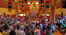 Khenpo Karthar resting in state in the main shrine room at Karme Ling