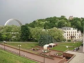 Khreshchatyi Park (Ukrainian: Хрещатий парк) is a city park in Kyiv located next to the European Square, on right bank slopes of Dnipro and along the Volodymyr Descent. It covers area of 11.8 ha (29 acres).