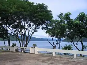 The park's mountain forests are evergreen and deciduous.[2] Tree species include Hopea ferrea, Pterocarpus macrocarpus, Afzelia xylocarpa, Dalbergia oliveri, Shorea obtusa, Xylia xylocarpa, Shorea siamensis, Schleichera oleosa, Lagerstroemia calyculata and Tetrameles nudiflora.[4] Park animals include Asian elephant, tiger, gaur, lar gibbon, Phayre's leaf monkey and sambar.[4] Bird life features species such as olive-backed sunbird, Oriental pied hornbill, red junglefowl, scaly-breasted munia, scarlet-backed flowerpecker and thick-billed green pigeon.[4] Freshwater fish species in the park include giant snakehead, ocellated featherback (Chitala ornata), greater brook carp (Tor tambroides), yellow mystus and transverse-bar barb.[4]