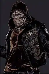 - Killer Croc appears in Suicide Squad, portrayed by Adewale Akinnuoye-Agbaje.[29] This version previously lived in Gotham City and fought Batman before he was imprisoned at Belle Reve. He is recruited into Task Force X and accompanies a SEAL scuba team to recover a bomb that was lost in a flooded tunnel to kill the Enchantress. Following the Enchantress' defeat, Croc is returned to prison and given a reduced sentence and improved cell conditions as a reward for his work.