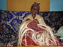 Old woman of Kenya weaving a kiondo
