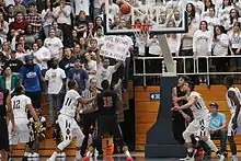 The Mount St. Mary's student section taunts St. Francis University player Earl Brown (15) during a game at the Knott Arena on January 24, 2015.
