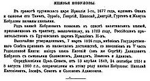 The family was subsequently established in the Kingdom of Kakheti and confirmed as princes (knyaz Kobulov, Кобуловы) of the Russian Empire in 1826.