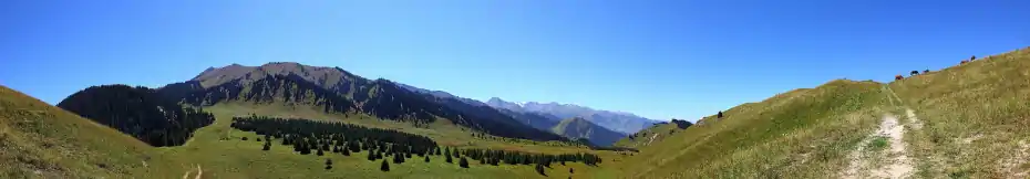 The plateau is part of the Ile-Alatau National Park, a protected area. Almaty, ski resort Shymbulak, Medeu and Big Almaty peak can be seen from the plateau.[3][4]