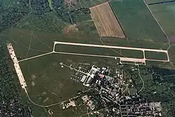 Konotop (ICAO: UKBF) is an air base in Ukraine located 4 km west of Konotop. It is a training base. During the end of the Cold War years, it was home to 105 UAP (105th Aviation Training Regiment) flying 101 Aero L-39 training jets.