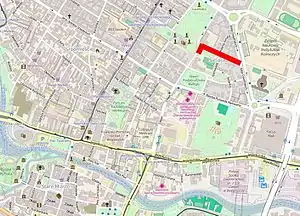Kopernika Street is located in the eastern part of central Bydgoszcz. The street runs between Ossoliński Alley and Staszica and Paderewskiego Streets. It is close to the precinct of the Pomeranian Philharmonic orchestra.