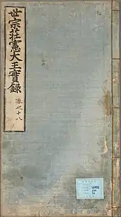 The first list of Korean cultural treasures was designated by Governor-General of Korea in 1938 during the Japanese occupation with "The Act of Treasures of the Joseon dynasty".[3]