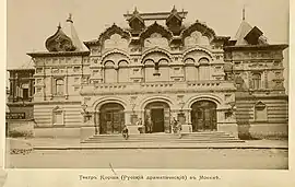The Moscow premier of Leo Tolstoy's The Power of Darkness was staged at the Korsh's on 19 October 1895. It was at this theatre that Chekhov the playwright debuted, after his play Ivanov had been commissioned by Korsh personally in 1887.[1] Later the theatre produced two more plays by Chekhov, The Bear (1888) and The Marriage (1902).[4]