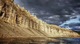 The Kotuykan has its source in the highest part of the Anabar Plateau. It is a fast-flowing river that flows westwards in a deep valley, often surrounded by picturesque cliffs of marine sediments exposed by erosion that are 1.5 billion years old.[2]