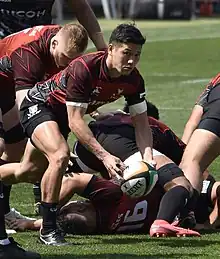 Kouki Arai (新井幸輝, Arai Kōki, born 14 May 1993) is a Japanese rugby union player who plays as a scrum-half.[1] He currently plays for the Canon Eagles in Japan's domestic Top League.[2]