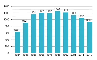 The village of Rupite had 926 inhabitants at the end of 2019, up from 626 inhabitants in 1934 but down from 1,248 people in 1985. The population is declining since Fall of Communism.[1] Nearly all inhabitants are ethnic Bulgarians (99.6%).