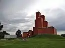 Newer architecture dominates the city's panorama. A blend of Viennese, Balkan as well as Brutalism is present, as showcased in the monuments to the Kragujevac massacre.[28] Post-war concrete apartment blocks built during the Socialist Federal Republic of Yugoslavia period are prominent.[28] Today, glass office buildings reflect the ambitious business aspirations of the city. Some important buildings in Kragujevac include:
