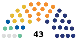 All seats on the city council were being contested in the 2002 election. The number of seats was lowered from 75 to 43.