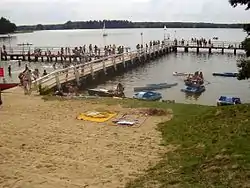 Kretowiny includes the largest of four campsites around Lake Narie, a popular tourist attraction. There is also a pier extending into the lake.
