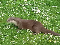 The forests are also a refuge for various predators. In particular, there are numerous species of least weasel (Mustela nivalis), European polecat (Mustela putorius), and stoat (Mustela erminea). There are stable populations Eurasian otter (Lutra lutra), red fox (Vulpes vulpes) and European pine marten (Martes martes). European badgers (Meles meles) and raccoon dogs (Nyctereutes procyonoides) are quite numerous, they displace badgers from their lairs. Similarly, under the influence of American mink (Neovison vison), the population European mink (Mustela lutreola) is slowly declining. Territory of the reserve are regularly visited by one or two Eurasian lynxes (Lynx lynx).[9]