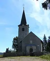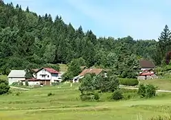 The local church, on a small hill southwest of the settlement, is dedicated to Saint Leonard and belongs to the Parish of Rob. It is a 16th-century Gothic building with surviving wall paintings. The Baroque belfry was added in 1667.[6]