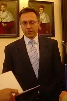 In 2010, he became an economic expert advisor, contributing to the PJN program.[6] In 2011, he supported the economic program of the Congress of the New Right party.[7] During the parliamentary elections in 2011, he was a candidate of the Union of Presidents - Citizens to the Senate in one of Warsaw's districts. He received 36,565 votes (16.23% of all votes), taking third place among four candidates.[8]