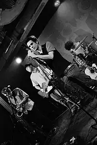 ![]() Kumm during a live performance, October 2017. Left from right: Mihai Iordache, Oigăn, John Ciurea, Cătălin Mocan, Dan Georgescu, Kovács András. | |