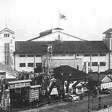 Kuramae Kokugikan (Japanese: 蔵前国技館, Hepburn: Kuramae Kokugi-kan) was a building situated in the Kuramae neighborhood of Taitō, Tokyo which was built by the Japan Sumo Association and opened in 1954. Its construction was decided to replace the old bomb-damaged Ryōgoku Kokugikan. It closed its doors in 1984. The building was torn down and sporting events were transferred to the second Ryōgoku Kokugikan. The place is now the site of the Tokyo Metropolitan Government Bureau of Sewage.[2]