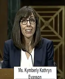Kymberly Kathryn Evanson (née Kymberly Kathryn Evans; born 1977)[1] is an American lawyer who serves as a United States district judge of the United States District Court for the Western District of Washington.