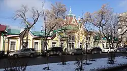 Kyzyl-Tan (Russian: Кызыл-Тан, tr. kyzyl tan) is a building of the former Verny Trading House, located at 63 Jibek Joly Street in Almaty. It is an architectural monument of the late 19th - early 20th centuries. Sources are divided on its architect and its time of construction. According to some, it was built in 1912 by the architect Andrey Zenkov. Others suggest it was built in 1896 by the architect Paul Gourdet to house Iskhak Gabdulvaliev's store.[1] It has been protected by the state as a monument of history and culture of national importance since 1982.