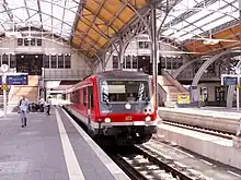 Lübeck Hauptbahnhof (German for Lübeck main station) is the main railway station serving the Hanseatic city of Lübeck, in the German state of Schleswig-Holstein. It is a through station at the western edge of the city centre. With around 31,000 travelers and visitors each day, Lübeck Hbf is the busiest of all the railway stations in Schleswig-Holstein. It is classified by the Deutsche Bahn as a category 2 station.