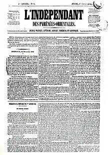 L'Indépendant is a regional newspaper from the South of France. It is published daily from its headquarters in Perpignan, and is mainly distributed in the Aude and Pyrénées-Orientales departments. It is owned by the Groupe Sud Ouest media group.