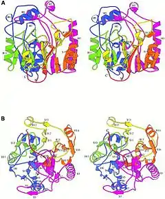 1. 1 2 3 4 Humm A, Fritsche E, Steinbacher S, Huber R (June 1997). "Crystal structure and mechanism of human L-arginine:glycine amidinotransferase: a mitochondrial enzyme involved in creatine biosynthesis". EMBO J. 16 (12): 3373–85. doi:10.1093/emboj/16.12.3373. PMC 1169963. PMID 9218780.