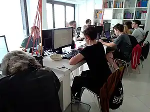 Participants at a Wiki Loves Pride event to improve LGBT-related content on Wikipedia, in Serbia (2019)