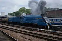 During the winter of 2010/2011 the locomotive received maintenance which included the cosmetic renaming and renumbering as scrapped classmate 4492 Dominion of New Zealand (BR number 60013). This conversion also included repainting the locomotive in LNER garter blue, the fitting of Gresley's original side valances (most of the valancing is from when the locomotive was masquerading as 2509 Silver Link) and the painting of its wheels in their original Coronation red colouring.[6] As the original 4492 had a New Zealand Government Railways five-chime whistle fitted shortly after its introduction to service in 1937, a suitable whistle was borrowed from the Glenbrook Vintage Railway in New Zealand.[7]