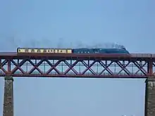On 25 July 2009, Bittern made a 188-mile run from King's Cross to York using a second tender to avoid the need to stop en route to take on water and change crews, carrying the headboard "The Brighton Belle" to publicise the launch of the Brighton Belle restoration project by the 5BEL Trust.[5] With the first tender having a water capacity of 5,000 gallons and coal, and the second tender only used for carrying an extra 9,000 gallons of water, it was thought that this would give Bittern a range of about 250 miles; occasional stops are desirable in any case, for things such as mechanical checks and coal redistribution in the tender and firebox.[5] A non-stop run on the East Coast Main Line had not been achieved since the 1968 King's Cross to Edinburgh hauled by 4472 Flying Scotsman, also with a second tender.[5] In June in the Top Gear Race to the North, a run using the newly built locomotive 60163 Tornado had been achieved from London to Edinburgh on the ECML with water stops but no station stops, also a first since the 1968 run of No. 4472.