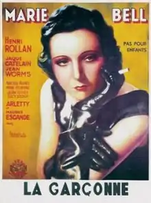 La Garçonne (The Bachelor Girl or The Flapper) is a 1936 French black-and-white film adaptation of the novel of the same name by Victor Margueritte. It was directed by Jean de Limur and starred Marie Bell (in the title role), Arletty and Edith Piaf.