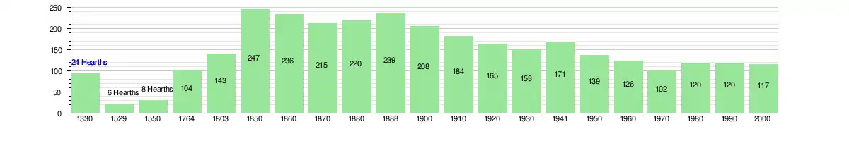 As of 2000, there were 50 private households in the municipality, and an average of 2.3 persons per household.[9] There were 16 households that consist of only one person and 4 households with five or more people. Out of a total of 51 households that answered this question, 31.4% were households made up of just one person. Of the rest of the households, there are 14 married couples without children, 14 married couples with children There were 5 single parents with a child or children. There was 1 household that was made up of unrelated people and 1 household that was made up of some sort of institution or another collective housing.[10]