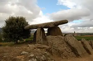 La chabola de la Hechicera (in Basque: Sorginaren Txabola, "The Witch's Hut") is a dolmen group located in Elvillar, Álava, in the Basque Country in Spain. Three large vertical stones support a large horizontal flat stone. Nine large stones form a chamber in a polygonal shape. The corridor is made of five stones, and is divided into two. The site was probably a funerary construction to hold the remains of the people in the settlement.