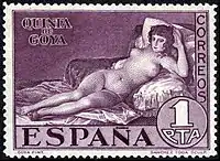 The Naked Maja (Spanish: La maja desnuda) is a philatelic name for three postage stamps of Spain of 1930 depicting the La maja desnuda painting (1800) by Francisco de Goya (1746–1828).[1] They are part of a set marking the anniversary of the death of this Spanish artist, and are considered the world's first postage stamp with nudes.[2]