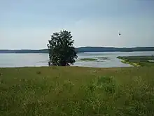 Near the lake there are archaeological sites. The ancient human settlement "Linden oxbow lake" (Russian: Липовая курья) was a haven of a small tribe of about 5,000 years ago. A total of about 30 prehistoric settlements have been found, with a variety of artifacts: pottery vases with ornaments, stone knives, and scrapers.