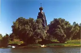 The wooden Church of the Nativity of Saint John the Baptist (1694) at the village of Shirkovo, classified as a cultural heritage monument of the federal significance, is located at the bank of the lake.